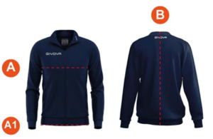 izmerite del od vratnega šiva, do dna jakne, pri čemer ohranite navpični trak